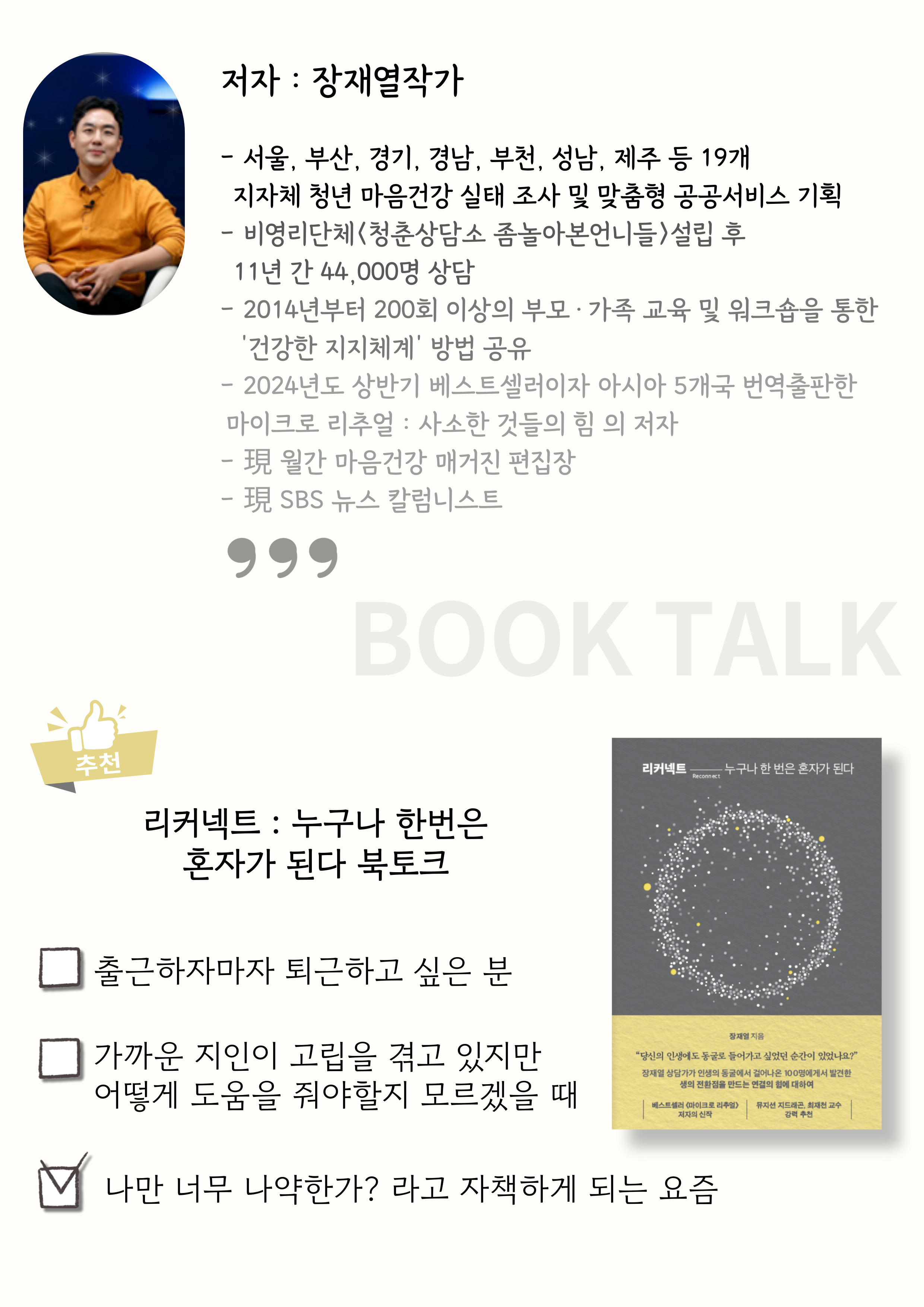 리커넥트 누구나 한번은 혼자가 된다 북토크